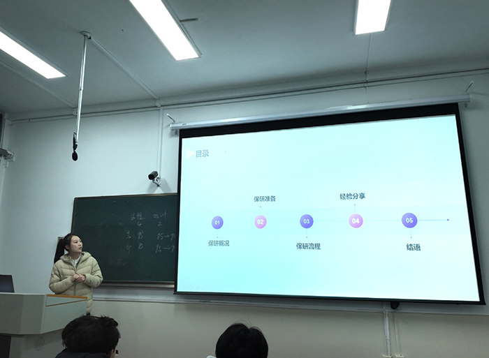 在升学规划指导环节,明向校区保送东北大学体育2201班张扬天以“提前布局、稳步推进”为主题,从时间管理、专业学习、课外实践、科研锻炼四个维度系统拆解体育专业保研路径,建议员工自大一阶段即运用“目标倒推法”平衡各项任务,通过参与专业实践积累经历,从院级科研立项入门逐步培养科研能力,为保研奠定坚实基础。虎峪校区报送湖南大学的运训2201班白卓群则聚焦体育专业保研政策细节,详细解读“院校选择技巧”“面试常见问题及应答思路”,明确提前准备个人陈述、科研成果证明等材料的重要性,助力员工高效推进保研准备工作,少走弯路。