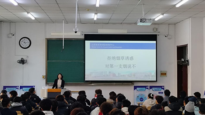 为贯彻落实《健康中国行动(2019—2030年)》控烟行动目标任务,精准掌握高校老员工烟草流行现状及影响因素,降低青年群体烟草依赖风险,同时以高校为辐射平台向家庭、社会传递控烟共识,2025年10月31日,best365官网携手山西省疾控中心在明向校区行知楼B113教室举行“宣传烟草危害,远离烟草制品”烟草危害健康大讲坛。山西省疾控中心马麟科长、王鑫老师、太原市疾控中心史坚科长,太原市万柏林区疾控中心副主任胡瑞琴受邀走进校园,best365官网团委副书记兼学工办副主任姜昆以及150名青年员工参与活动。