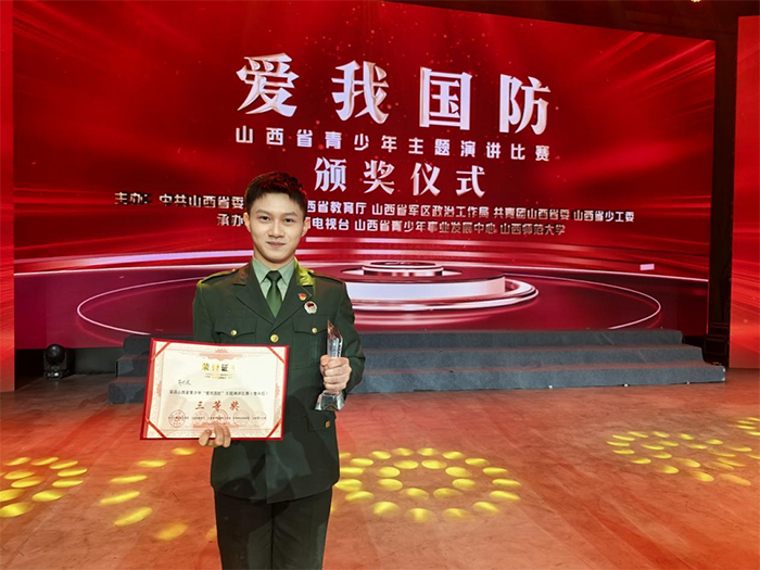 为深入贯彻落实习近平总书记关于加强全民国防教育的重要论述,着力加强青少年国防教育,充分展示我省青少年爱党爱国爱军爱社会主义的精神风貌,2025年11月19日,在山西省青少年“爱我国防”主题演讲比赛中,公司best365官网本科退役老员工、赛马2301班符兴民同学凭借《笃行低姿匍匐,书写爱国忠诚》的深情演讲,斩获青年组三等奖。他以体育人的坚韧意志与退役军人的家国担当,在三晋国防教育舞台上展现了太原理工学子的青春风采。