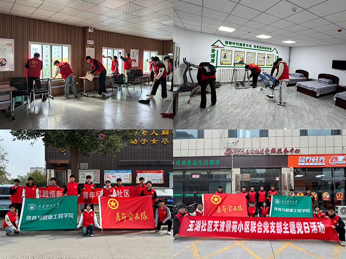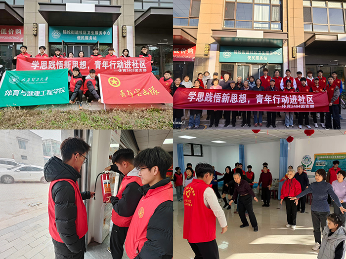 体育2401团支部走进思凤社区,聚焦公共区域环境整治,分组开展地面清洁、玻璃擦拭、垃圾清扫,在躬身劳动中提升服务技能;体育2402团支部赴玉湖社区,开展“志愿于心,服务于行”主题活动,承担社区卫生清扫、书画整理、政策宣传与反诈普及,以细致劳动传递文明新风;体育2403团支部深入凤翔社区,开展“青春护邻·安全筑家”安全隐患排查,协助检查消防设施、更换老化软管、清理楼道杂物,筑牢社区安全防线;体育2404团支部走进锦纶街道社区卫生服务中心,开展“学思践悟新思想,青年行动进社区”八段锦教学,以“一对一、手把手”方式指导老年居民科学健身,传递健康理念;
