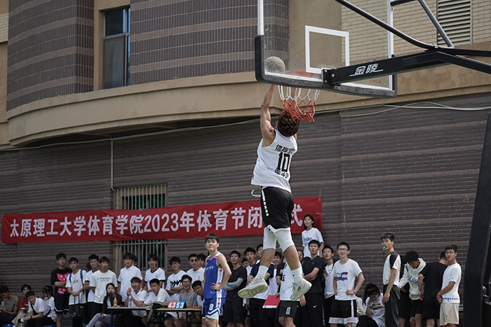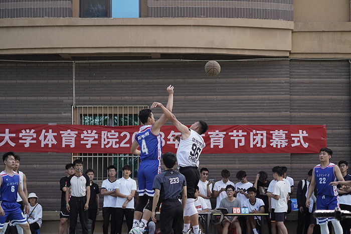 闭幕式前,体育教育篮球专选员工与公司阳光组男篮进行篮球表演赛。“上大学,打篮球,幸福一生”,一个篮球,一身球衣,一路热血沸腾;一腔热血,一往无前,一路激情澎湃!在观看球赛同学们的一声声热烈欢呼中,将表演赛推向高潮。