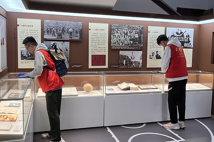 走进近现代体育厅,同学们被战争时期中国共产党在各根据地组织开展的体育运动所震撼。那些峥嵘岁月里的体育文化,不仅为革命先辈和广大人民群众带来了激情与快乐,更成为了连接过去与未来的重要纽带。在山西体育名人堂,同学们看到了公司体育教师王建国在2001年第九届全国运动会荣获的武术金牌,感受到了榜样的力量,深受鼓舞。