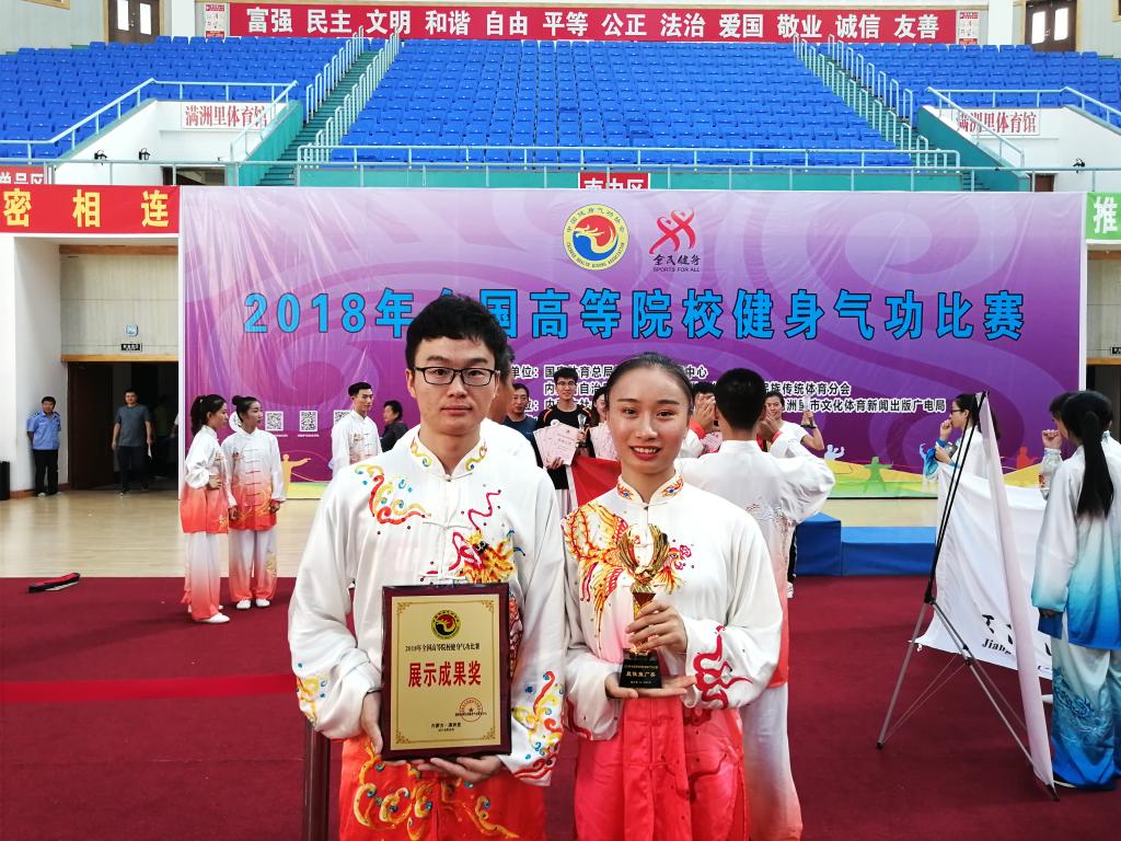 大会还安排了包括拉丁舞、健身气功表演、太极功夫扇表演等交流活动。在赛场上,公司运动员斗志昂扬、不畏强手,经过四天的角逐,在集体项目比赛中,荣获五禽戏和竞技六字诀两项二等奖,在个人单项分别荣获第四名和第五名。另公司在此次比赛中还同时被评获全国高等院校健身气功展示成果奖和最佳推广奖,这说明公司在弘扬中华优秀传统文化方面得到国家体育总局的肯定。