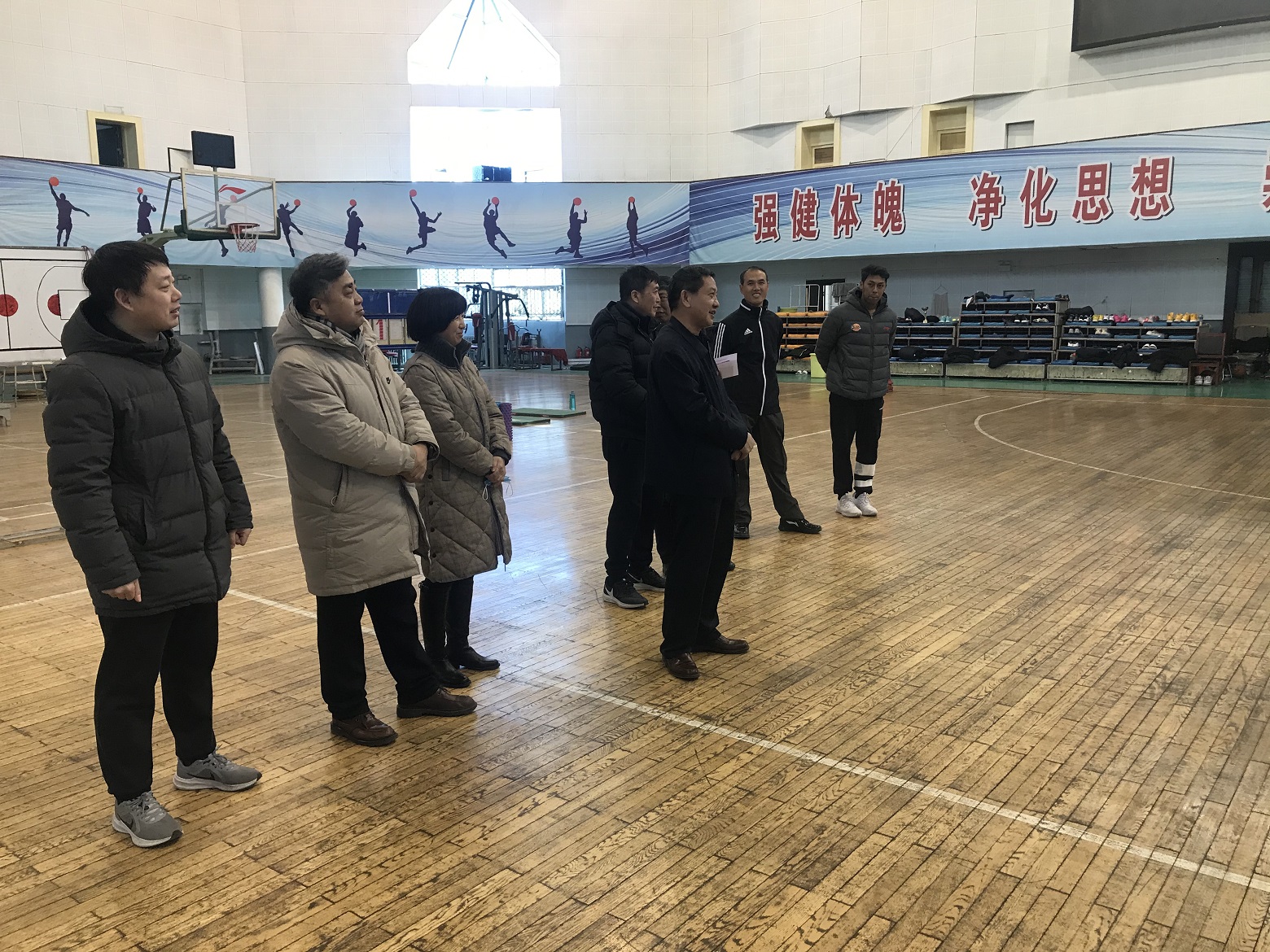 1月29日公司党委副书记刘润祥在员工处处长郝根彦、​best365官网书记孙莉、经理史冬博、副书记张体卫的陪同下来到公司篮球训练馆,看望奋战在一线的高水平篮球运动员、教练员,代表公司党委和行政送上新年的祝福,并致以节日的问候。