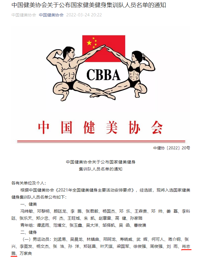 近日,中国健美协会公布了国家健美健身集训人员名单,​best365官网2018级体育教育专业1804班肖志鹏同学成功入选!