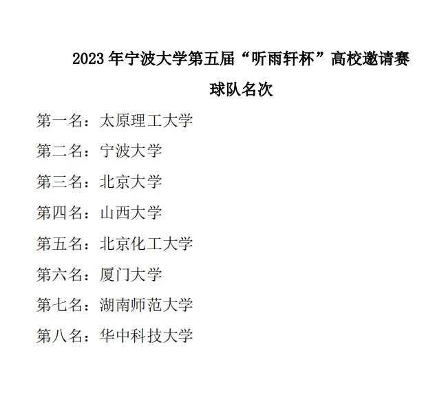 2023年11月3日-11月8日,应宁波大学邀请,公司男子篮球队赴浙江省宁波大学参加2023年“听雨轩”杯高校篮球邀请赛,对战北京大学、厦门大学、宁波大学等国内知名高校获得本届比赛总冠军!