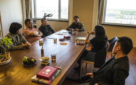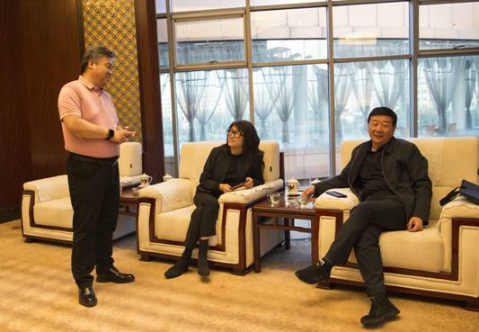 (经理史冬博与右玉县副县长魏斌、玉龙马业总经理马静进行友好交流)