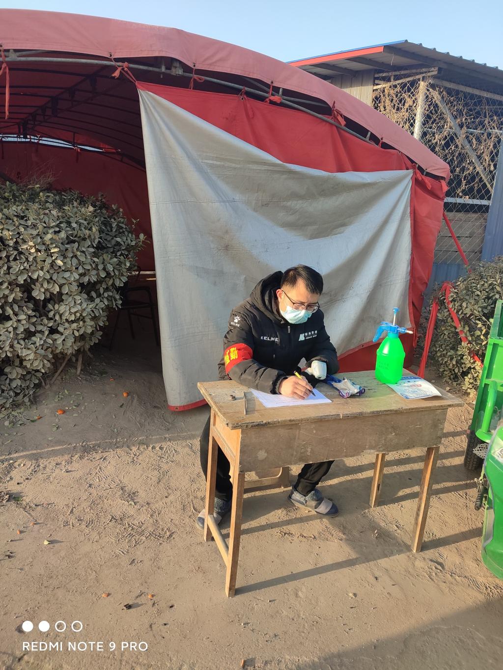 天气的寒冷和疫情的危险,阻挡不了他前进的步伐。每天早上7点半,潘老师准时来到村口的防控点,排查进村车辆和人员,进行体温测量。虽然都是熟悉的面孔,都是父老乡村,潘老师还是严格按照疫情防控的相关要求进行了详细登记,保村民们一方平安。这样的工作一干就是一整天,下午6点才能回到自己的家里,难得的假期不能陪伴父母长辈,不能陪伴年幼的女儿,但潘老师说:“我还年轻,为父老乡村们多做点贡献才能体现我的价值!”