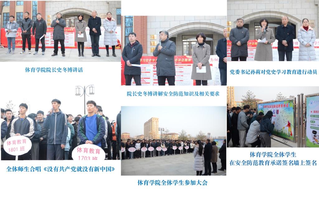 为贯彻落实best365官方网站安全工作和党史学习教育动员要求,2021年3月7日,best365官方网站体育院在公司门前成功开展了“best365官方网站公司开学第一课——安全教育暨党史学习教育动员大会”。大会由公司党委副书记张体卫主持。 出席本次会议的领导有公司党委书记孙莉、经理史冬博、 副书记张体卫、副经理田忠新、团委书记潘崇帅,辅导员滕冕、雒晓东参加会议。 史冬博经理就安全主题发表讲话。提出三点要求:一、体院员工要关注国际关系和国家安全,奋发图强。二、体院员工要放眼于国际、国家、社会和校园安全的高度考虑个人的发展安全,依托理工大的平台通过考研迈向更高的台阶。三、每位同学都要提高安全意识,加强生命安全、心理安全、教室活动安全、交通安全、食品卫生安全、防火安全、防电安全、防溺水安全、运动安全、防止网络诈骗安全等多方面的安全。 孙莉书记在动员讲话中指出全党开展党史学习教育,正当其时,意义重大。要求全院师生落实公司党史学习教育方案,做到学史明理、学史增信、学史崇德、学史力行,学党史、悟思想、办实事、开新局,以昂扬姿态奋力开启全面建设社会主义现代化国家新征程,以优异成绩迎接建党一百周年。 张体卫副书记希望同学们能够认真落实经理和书记提出的要求,通过安全承诺书签名等一系列活动进一步增强了同学们的安全防范意识,创建安全稳定的校园环境,为公司双一流建设做出应有的贡献。 |