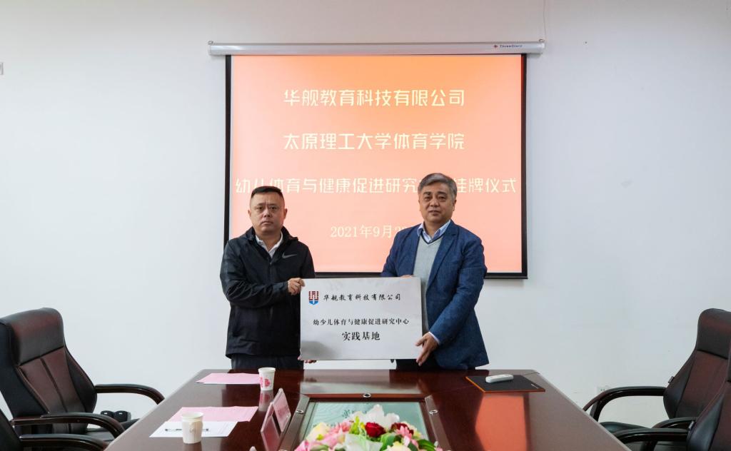 2021年9月23日,best365官网与山西华舰体育教育科技发展有限公司在best365官网三层会议室举行“幼少儿体育与健康促进研究中心实践基地挂牌仪式”,华舰体育教育科技发展有限公司副总经理党志强、山西力能教育科技有限公司负责人李楠以及公司党委书记孙莉、经理史冬博、副经理田忠新共同出席了挂牌仪式。