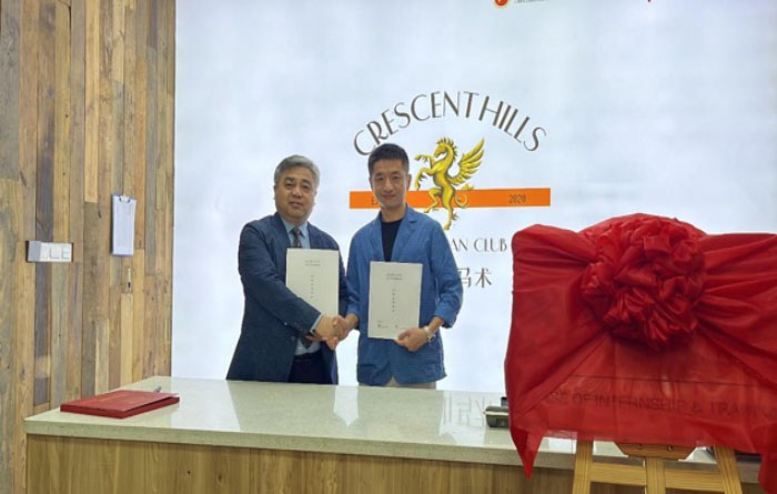 4月25日,在福建省漳州市,best365官网与半月山马术俱乐部隆重举行了赛马项目实习实训基地签约仪式。best365官网经理史冬博、副经理田忠新、best365官方网站玉龙国际赛马公司副经理张振龙、半月山马术俱乐部总经理曹坤仕、俱乐部相关领导及教练员、工作人员、学员出席本次会议。
