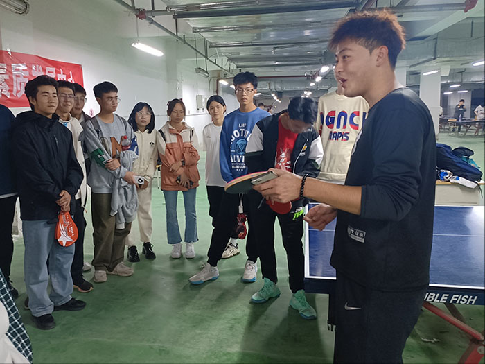 乒乓球俱乐部部长王绅说:练好乒乓球专业技能,起始动作是否规范至关重要,这次教学活动主要目的是加强同学们的基础动作联系,提升初学者更加热爱乒乓球运动,使同学们掌握基础动作的同时感受运动带来的魅力,锻炼技能的同时增进身心健康。
