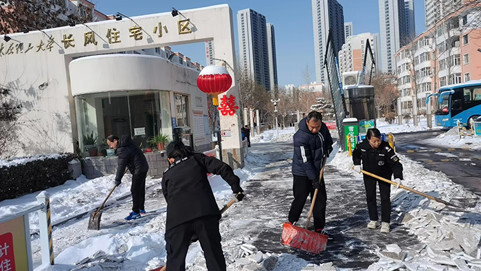 2024年2月20日~21日,山西省气象台对山西中部多地陆续发布寒潮、大风蓝色预警、道路结冰黄色预警和暴雪橙色预警信号。山西省太原市部分地区积雪厚度已达18厘米,给居民的出行和日常生活带来诸多不便。为了积极应对新一轮的寒潮雨雪冰冻天气,充分发挥基层党组织战斗堡垒作用和广大党员先锋模范作用,公体部党支部迅速行动,发出扫雪除冰倡议书,呼吁全体教师党员根据各自住宅小区实际情况,自觉清除门前积雪,第一时间投入到小区公共区域扫雪除冰活动,为道路安全畅通贡献一份力量。同时党支部书记赵平花老师组织住在理工大长风小区的best365官网教师,开展铲雪除冰志愿服务活动,协助小区物业人员进行扫雪除冰工作,确保居民的出行安全。