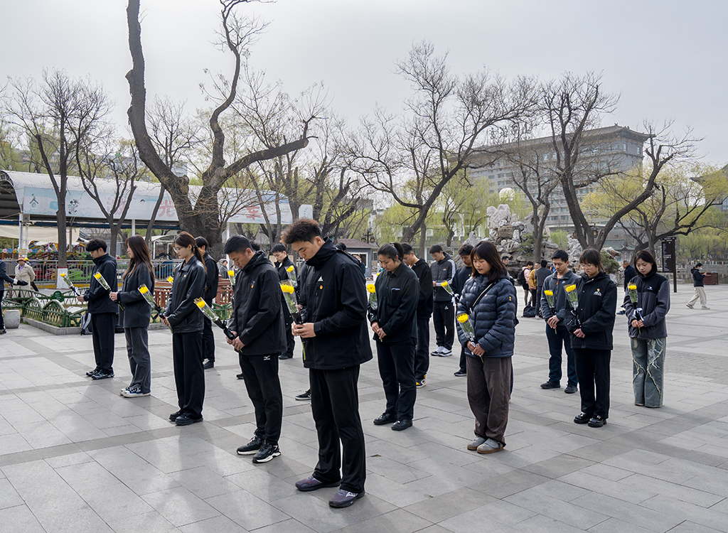 上午8时,全体同学统一着黑色正装、佩戴团徽,在文瀛公园东门集合,在庄严肃穆的氛围中,拉开序幕有序开展祭扫活动。在革命烈士纪念塔前,父老乡亲们深情讲述,员工仿佛回到了那个热血沸腾的年代。全体成员默哀后缓步上前敬献鲜花,全体人员面向烈士雕像行三鞠躬礼,表达深切缅怀之情。