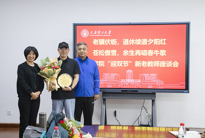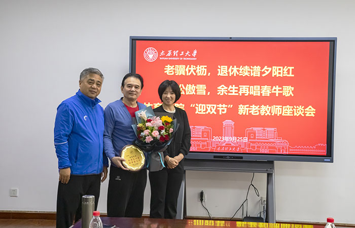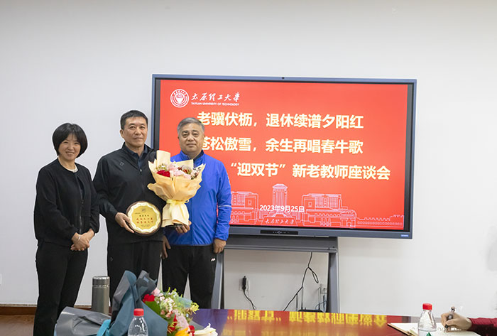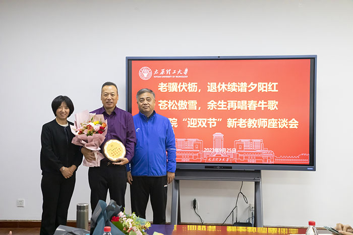 座谈会首先进行了任晋军、杨新生、刘翺、宋志伟等四位老师的荣退仪式。孙莉书记,史冬博经理分别为四位退休教师颁发了“荣退杯”和荣退纪念品。