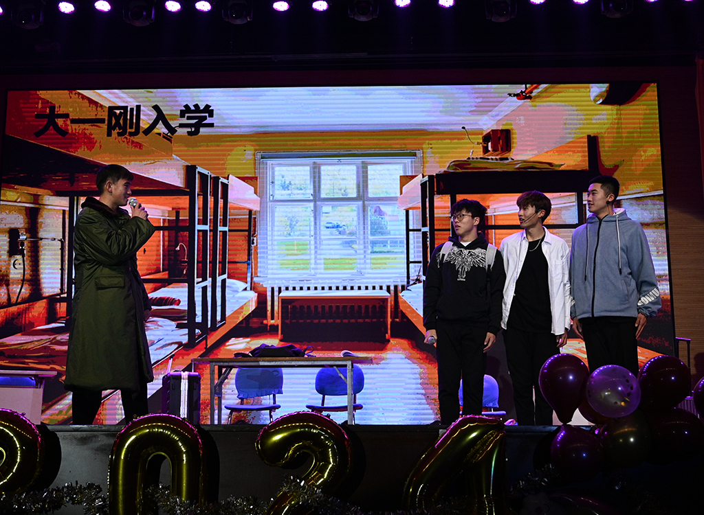 一场活力四溢的乐队表演《爱的飞行日记》瞬间点燃了现场气氛,best365官网辅导员队伍以及团学干部代表带来的《青苹果乐园》活力四射、激情洋溢;歌曲串烧《没那么简单》、《后山老头》、《淋雨一直走》、舞蹈《玩火》、街舞《霹雳无双》相继登场,赢得阵阵掌声;音乐剧《最美的青春》、影子剧《遇见》致我们懵懂的青春美好;小品《非诚不找》全程欢声笑语不断、《同学你好》叙述了大学四年的美好时光、引发观众感动落泪;《石榴花开》《晋韵·宋塑》为大家呈现了极富韵味的舞蹈盛宴;《少年凌云志》、《绽放》、《健与美》极具专业特色、展现体育魅力;《活着》、《抗日奇侠》引人深思、回味无穷,抽奖环节激动人心,观众们积极参与互动,热烈的欢呼声、鼓掌声将现场气氛推向高潮。最后,晚会在全体演职人员共同演绎《明天会更好》的热烈氛围中落下帷幕。