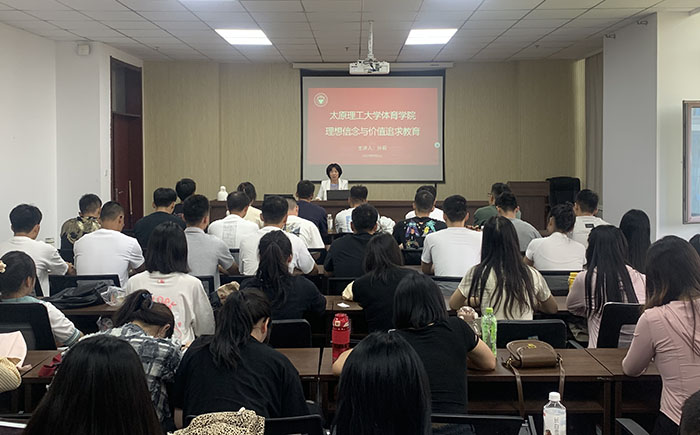 公司党委书记孙莉同志就研究生理想信念与价值追求进行授课交流,她指出,广大研究生要坚定理想信念,坚定不移听党话,跟党走,以习近平新时代中国特色社会主义思想为指导,刻苦学习,投身于体育学科的科研事业中,将论文写在祖国大地上,为国家建设、社会发展做出贡献。