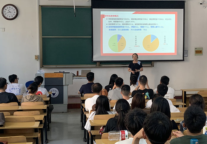 公司党委副书记张体卫、副经理张美珍分别就日常管理与校规校纪教育、研究生科研管理等进行了集中授课,副经理田忠新通过主题班会的形式与研究生新生进行交流。本次入学教育还包括体育学科前沿与培养管理教育、心理健康和校园安全教育、科学道德和学术规范教育、实验室安全教育等方面。