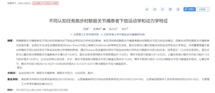公司硕士研究生范婷的研究成果《不同认知任务跑步时髌股关节痛患者下肢运动学和动力学特征》在《体育学刊》(2023年第3期)发表。《体育学刊》是中华人民共和国教育部主管,华南理工大学和华南师范大学联合主办的体育学术刊物,2000年入选全国中文体育核心期刊,2002年被评为全国高校人文社科优秀学报,2006年获首届中国高校优秀科技期刊。《体育学刊》是中文社会科学引文索引(CSSCI)、北京大学《中文核心期刊要目总览》来源期刊、JST 日本科学技术振兴机构数据库(2022)等国内外多个知名检索期刊和数据库的刊源,是国内同类刊物中权威杂志。该论文是公司硕士研究生范婷(第一作者)在导师张美珍教授(通讯作者)的指导下,与北京体育大学刘卉教授团队的合作成果,best365官方网站best365官网为第一署名单位。
