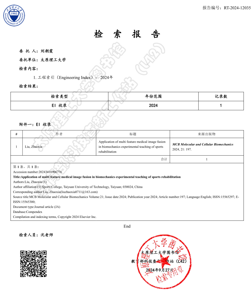 公司教师刘朝霞的研究成果《Application of multi feature medical image fusion in biomechanics